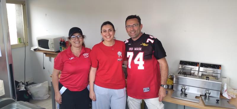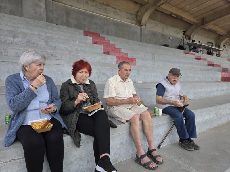 Un grand merci à l'équipe sympathique de la buvette pour ce déjeuner Saucisses Frites en plein air dans les gradins.