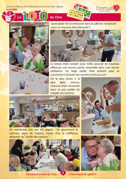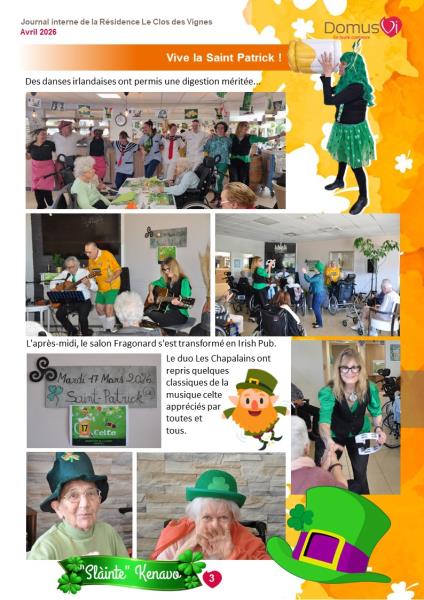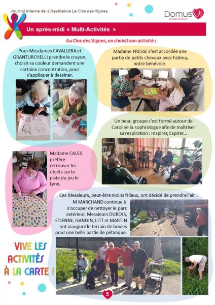 Vous trouverez dans cette dernière édition du journal interne tous les reportages récents sur la vie du Clos des Vignes.