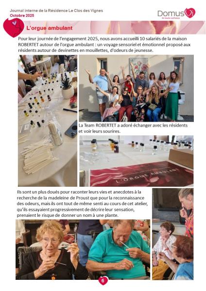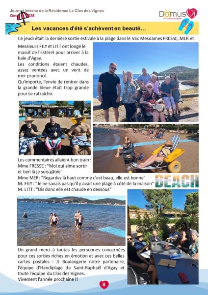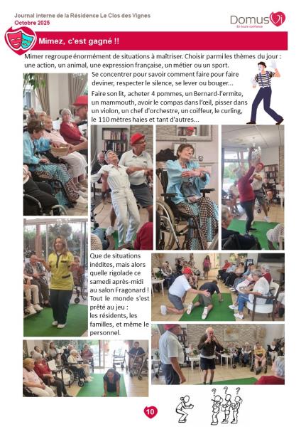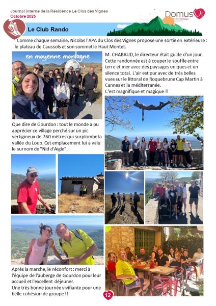 Vous trouverez dans ce dernier numéro du journal interne de la résidence des reportages sur la vie sociale.