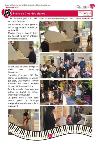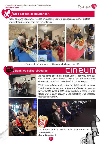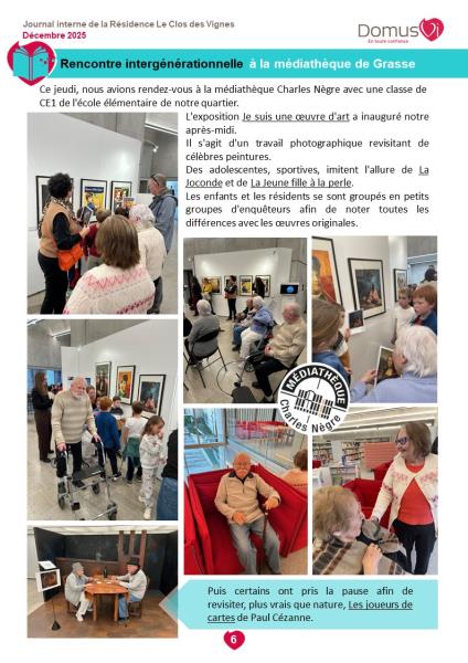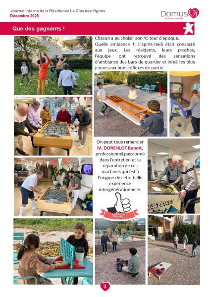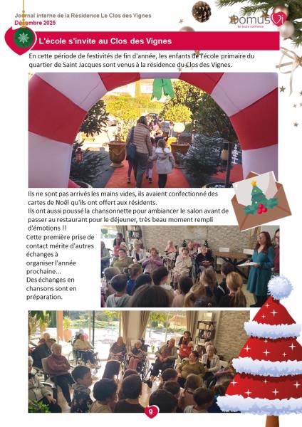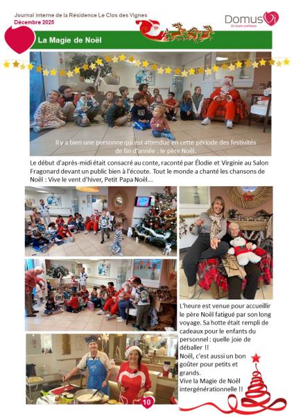 Vous trouverez dans ce numéro du journal interne de la résidence des reportages sur la vie sociale en cette fin d'année.